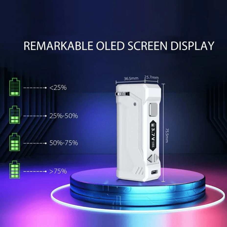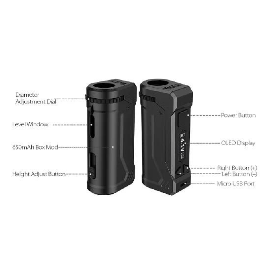 The Yocan Uni Pro is a pocket friendly universal 510 threaded battery box mod that is compatible with a wide array of oil cartridges thanks to adjustable height and diameter settings. The Yocan Uni Pro also features a digital display allowing full control over the voltage settings for your oil.