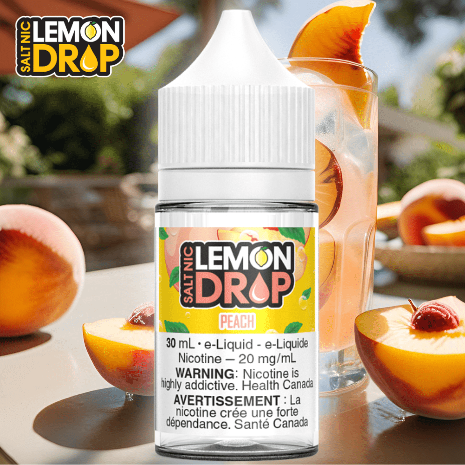 Peach Lemonade Salt nic by Lemon Drop Is super fresh and juicy salt nicotine e-juice you will not regret trying! This flavor combos both sweet and juicy peach with an amazing sour lemonade to make a delicious salt nicotine e-juice like no other! You will not be disappointed!