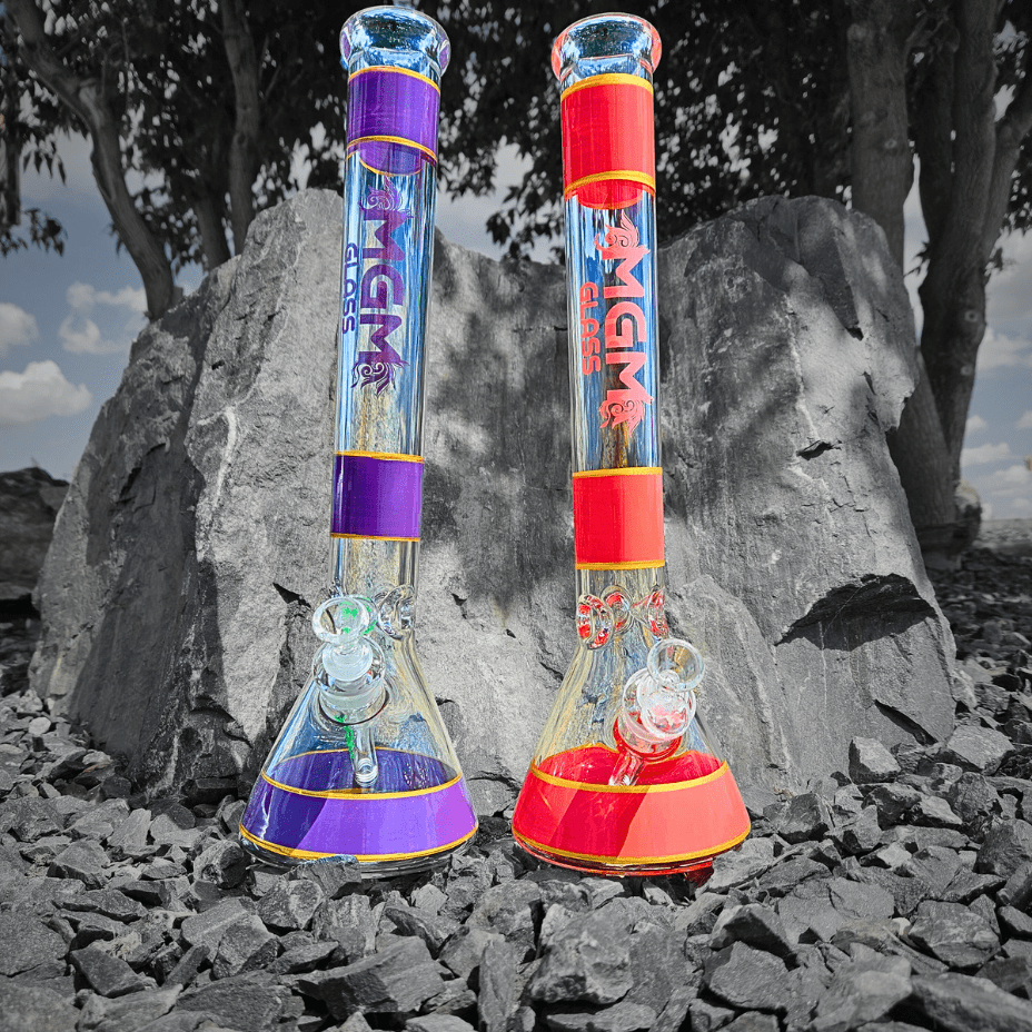 This MGM Glass Beaker is 18" Tall and made with a sturdy 7mm thick glass so you don't have to be so worried about fragility! With an ice pinch sitting at the bottom of the neck so you can add as much ice you want! Comes with a slotted downstem and standard 14mm bowl.