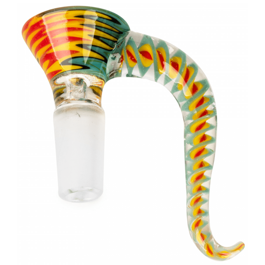 Red Eye Glass Carnival Cone Pull-Out 14mm is here and won't pull any tricks on you! This Carnival-Esque bowl is simply stunning, featuring hypnotic swirling patterns throughout the piece. Crafted out of pure borosilicate glass makes gives added durability, and the long handle is amazing for more grip as you pop your bowl!