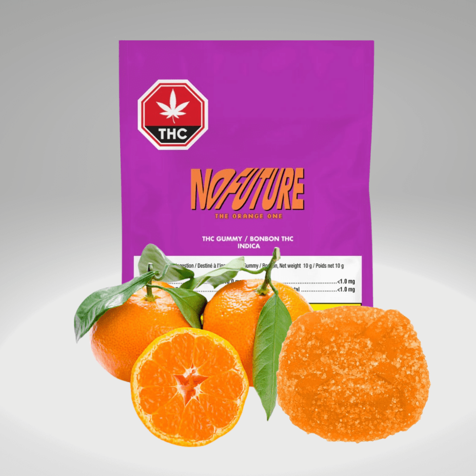NO Future The Orange One Indica THC Gummy is perfectly flavored like a fresh Christmas clementine without the seeds, the perfect combination of sweet and sour. Each indica gummy has 10mg of THC.