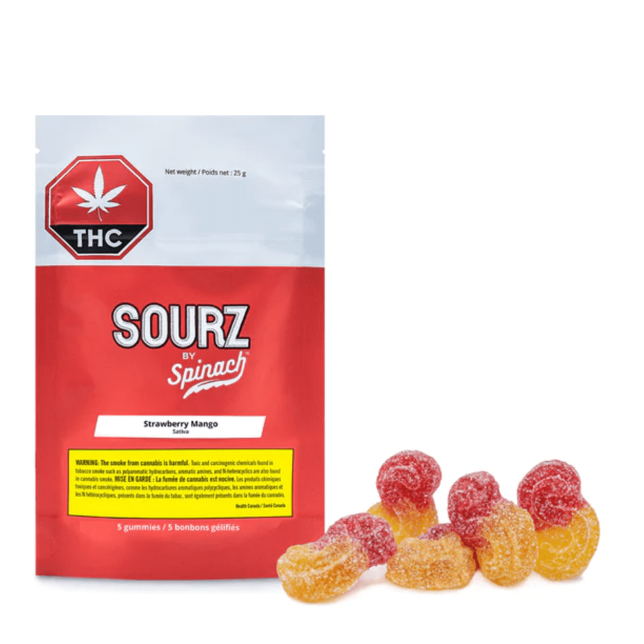 Spinach Sourz Strawberry Mango Sativa Gummies are the result when you mix luscious strawberry and tropical mango flavours. So get ready to pucker up because they bursting with flavours of Strawberry Mango delivered in the consistent quality you have come to expect from Spinach SOURZ Gummies.