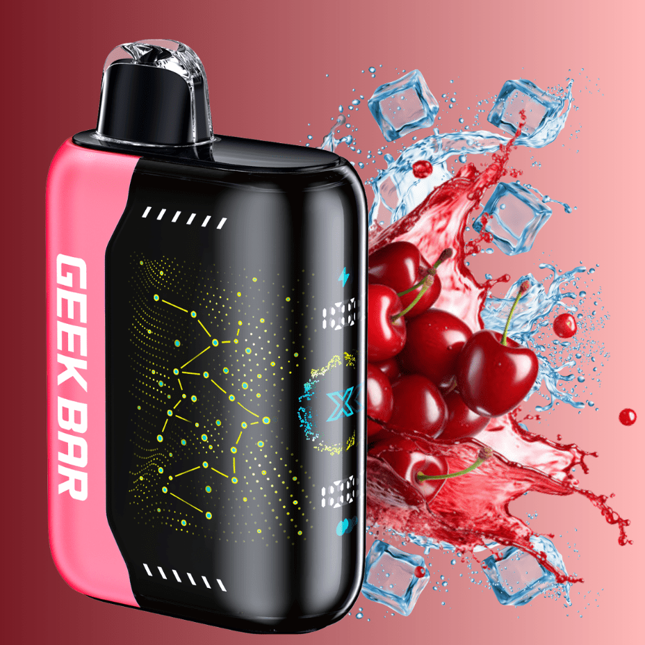 Discover the 25,000 puff Geek Bar Pulse X 25K Disposable Vape, showcasing the bold Cherry Blast Ice flavor. Experience an exciting burst of juicy black cherry, complemented by a refreshing icy chill for a flavorful and cool vape.