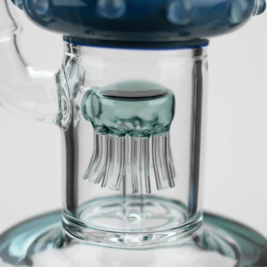 H2o Jelly Fish Percolator Bong is made from quality 100% borosilicate glass with a thickness of 7mm from top to bottom. Equipped with a vortex tunnel, and jellyfish percolators, the puffs are ultra infused with water bubbles. Cooling down your hits, through an impressively designed piece.