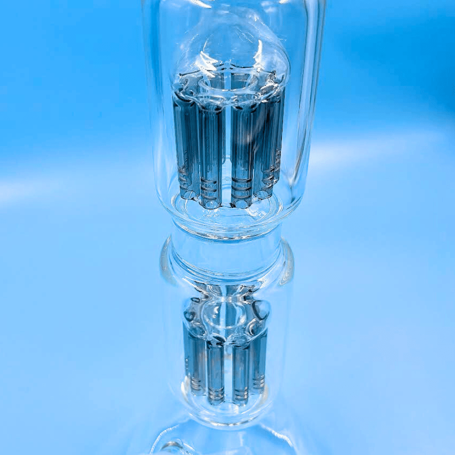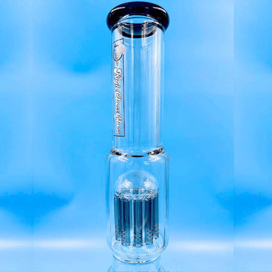 Firstly, the High Class Glass Double Perc Beaker is built for action. The built in tree percs increase filtration, promoting smooth and enjoyable smoke. Fill all chambers with water for ultimate performance! To add, the beaker style base gives ample room for water- acting as a natural filter, the water traps ash and other impurities from smoke before reaching your mouth!