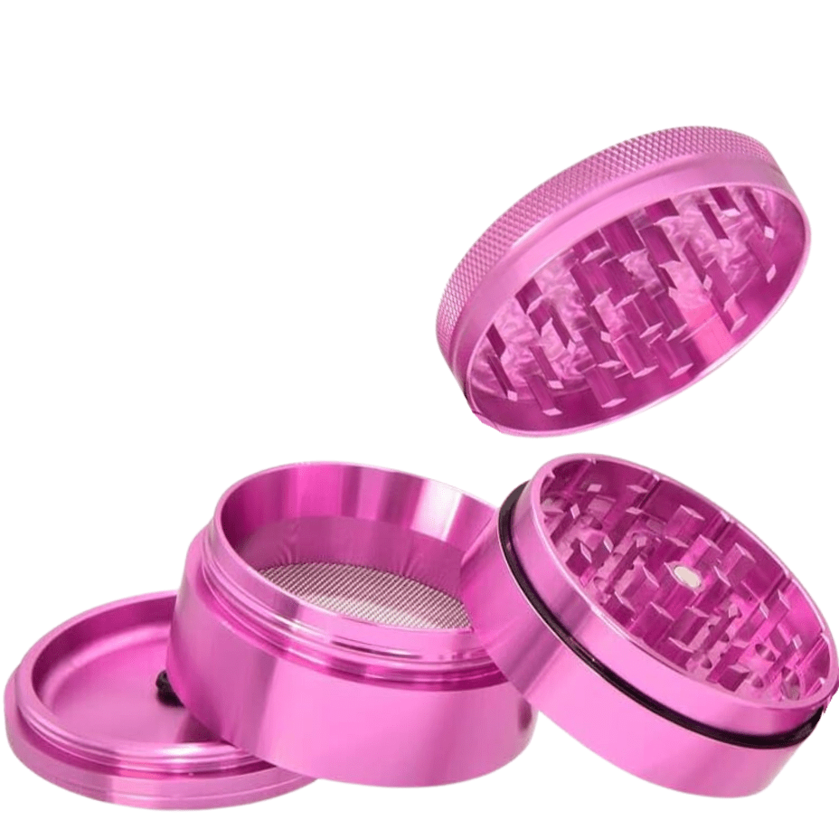 Elements Pink Aluminum 4 Piece Grinder is a 56mm herb grinder, in the most stylish shade of pink! To begin, this grinder features a four part design. Highlighting a deep mid section stores more than average, so you do not need to be grinding all night long. Not to mention, the sharp diamond shape teeth on this pink 4 piece grinder cuts through the stickest of bud like a breeze.