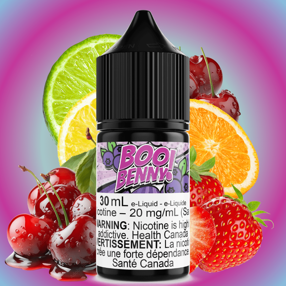 Boo Benny Salt by Maverick E-Liquid is a wonderful fruit explosion of cherry, strawberry, orange providing a sweet tangy mixture to start out with and subtle hints of lemon and lime to bring that mouthwatering goodness that is sure to bring you back for just a little more! Think of putting a quarter in a machine when you were younger and getting a whole handful of these.