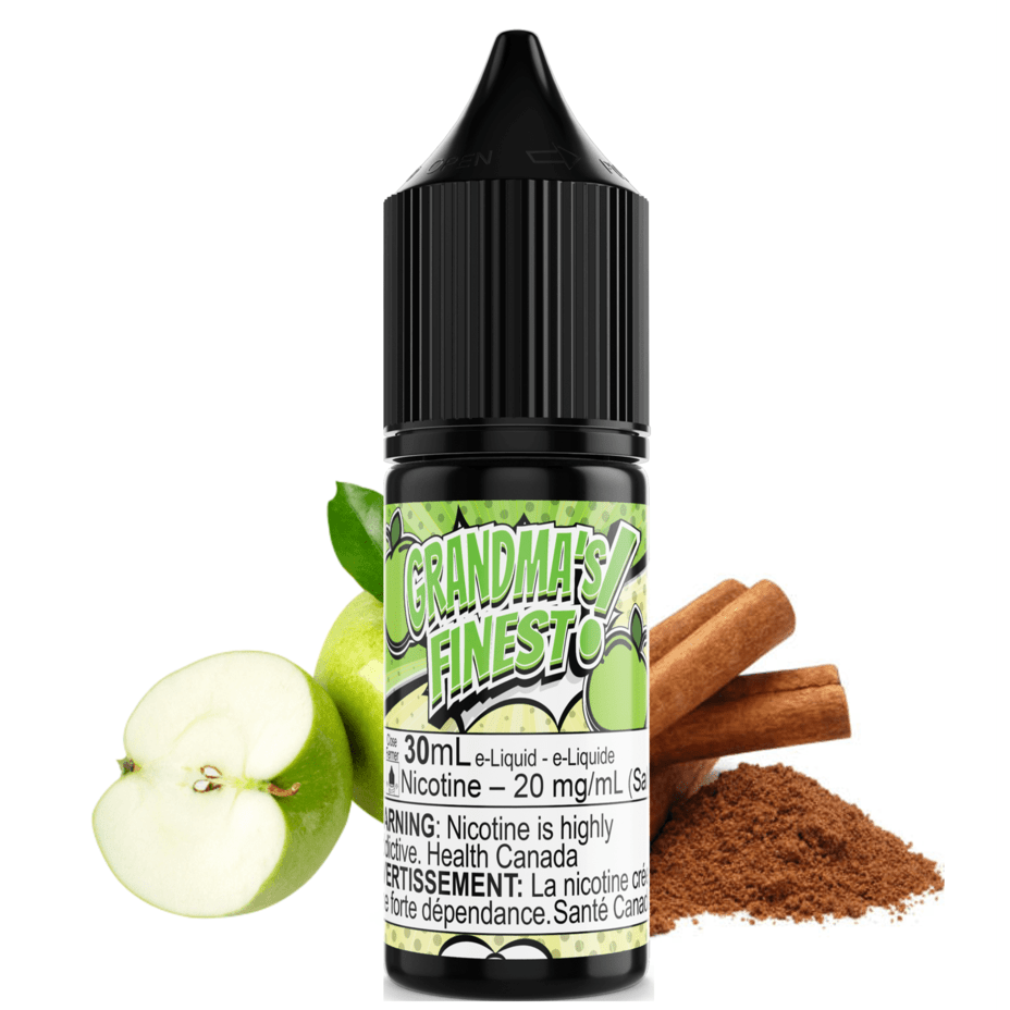 Grandmas Finest Salt by Maverick E-Liquid. This vape juice flavour will be sure to bring back fond memories of grandmas kitchen, sweet warm apple notes complemented by freshly ground cinnamon put on top of a freshly made crust baked until it is golden brown. Warm and inviting is the best way to describe this wonderful flavour.
