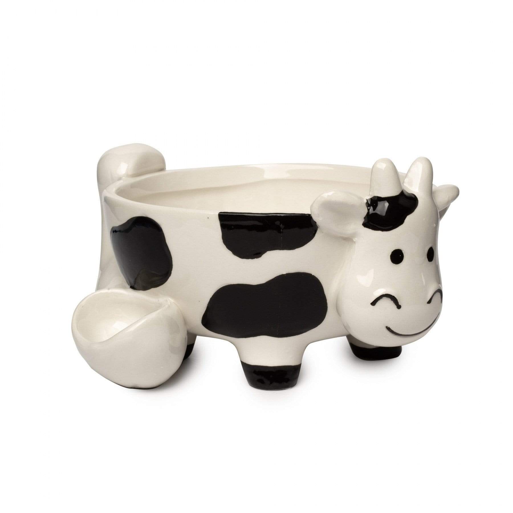 Cow Ceramic Bowl Pipe This fun bowl is made from ceramic. It has a fun smiling cow design in modern tones of black and white. The bowl can be used for cereal, munchies, and an after-dinner ice cream treat.