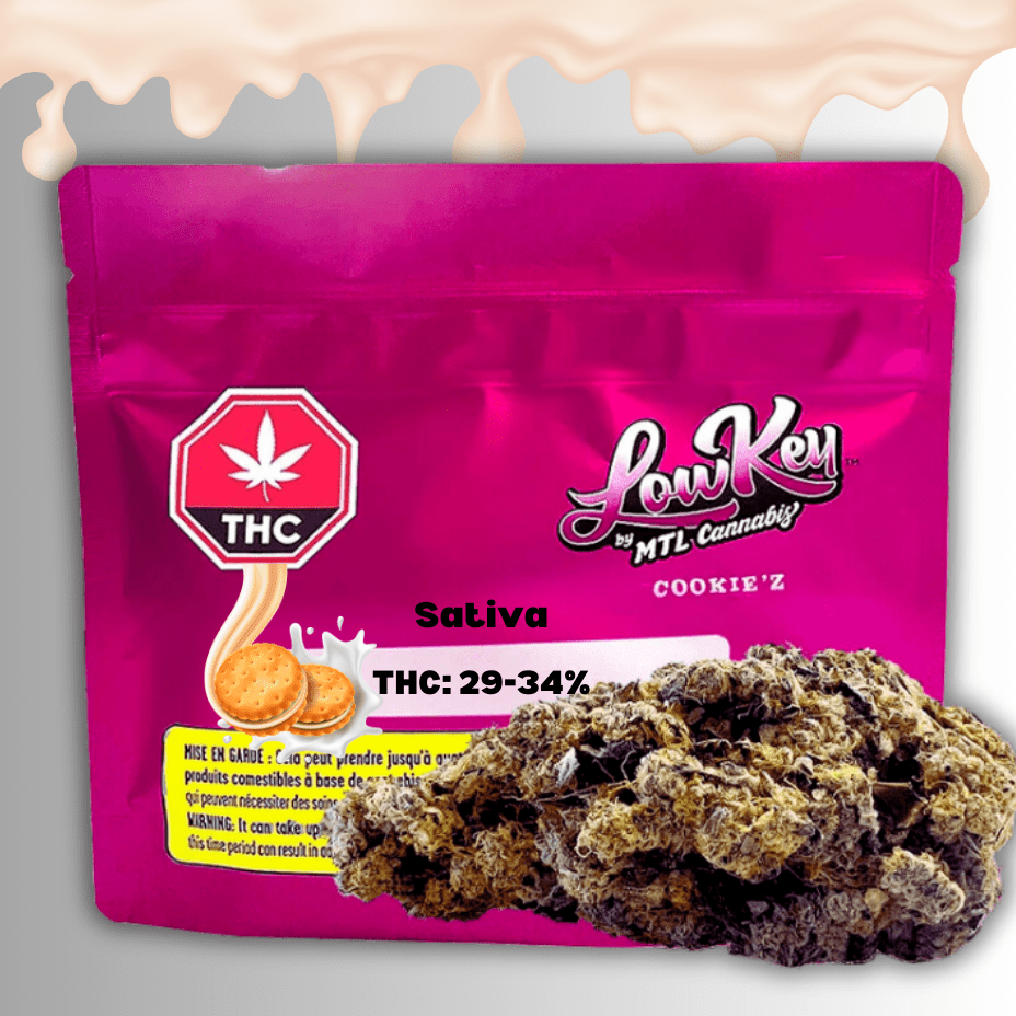 Lowkey by MTL Cannabis Cookie'z Flower is a HARD HITTING Sativa strain made up of a cross of Platinum Cookies x Ice Cream. Cookie'z Flower displays superb potency. It is considered a High THC flower. Lowkey reaches insane levels of 29-34% THC and 3.2% Terpenses so it offers a deep, prolonged high that lasts.