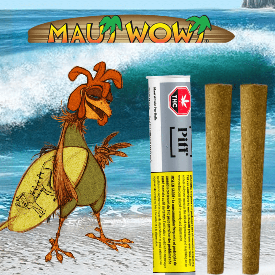 PIFF Maui Wowie pre-rolls are potent sativa dominant joints with a 27-32%% THC content. Hints of spice and fruit poke through a herbaceous back note, giving this sativa a profile that tastes like fresh hash!