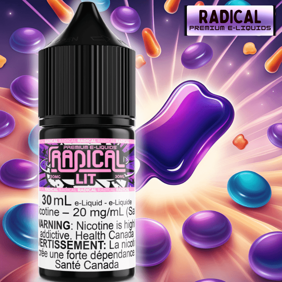 Lit Salt Nic by Radical E-liquid features a rich concoction of ripened fruit medley bearing a sweet resemblance to a nostalgic classic treat that everyone is sure to have tried and enjoyed. Each flavour from Radical E-Liquid is crafted with care and consideration towards the long-lasting flavour and superb coil life.