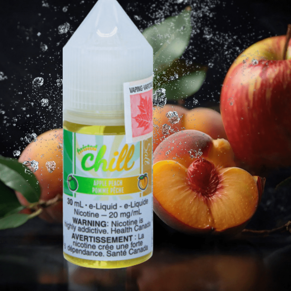 Chill salts introduces the new Apple Peach Ice flavor that is sure to be your next all day vape! With an incredible blend of luscious peaches blended together with tart green apples with a sparkling sweet notes twisted to perfection!