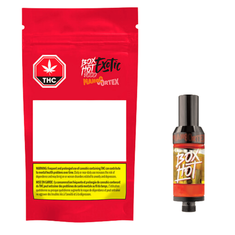 BOXHOT Mango Vortex 510 cart is a 1.2g size. It is packing an average THC of 80-83% so it is going to hit. This BOXHOT is bursting with ripe mango flavor followed by undertones of floral and diesel notes.
