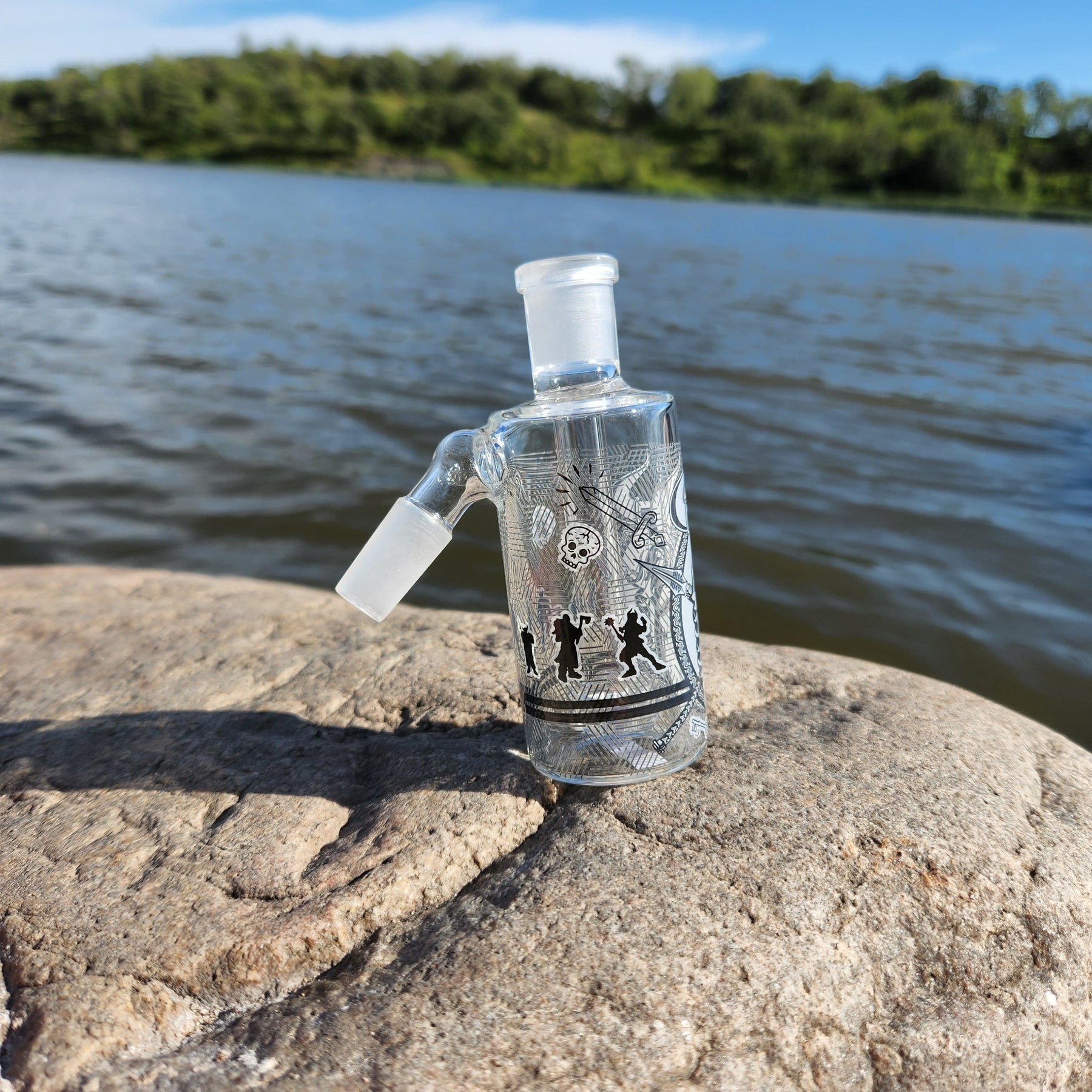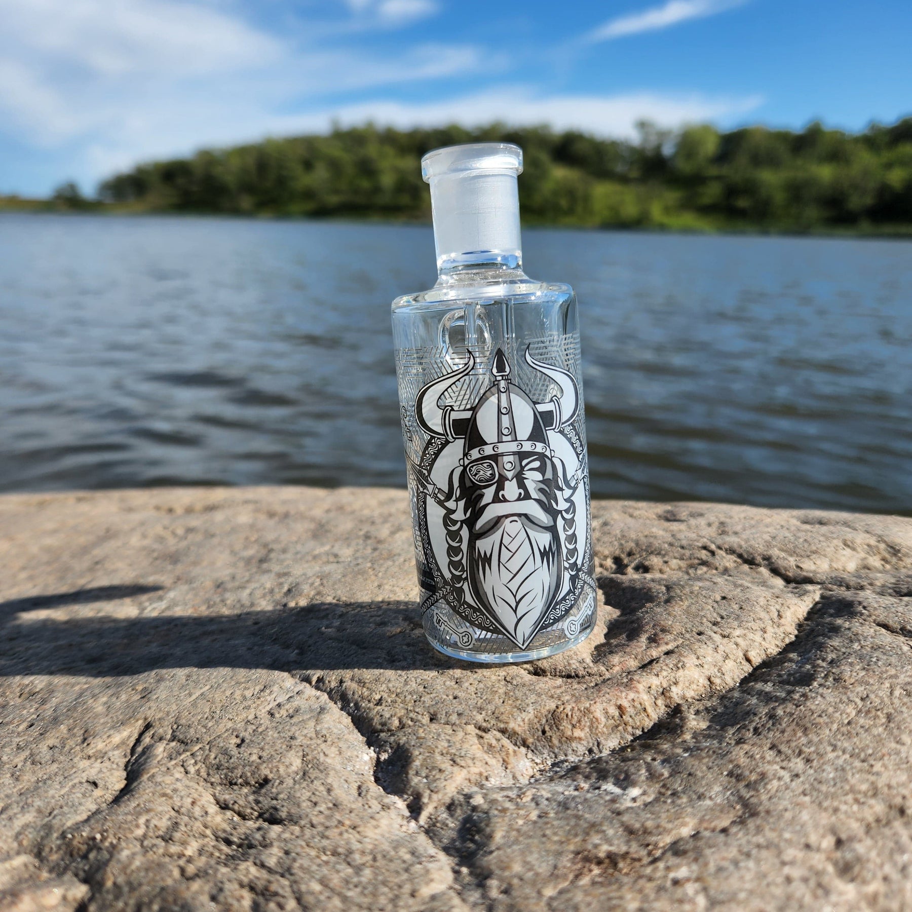 Cheech Glass Viking Ash Catcher has a 14mm joint and 45° with an absolutely stunning viking theme going all around the ash catcher. This piece is sure to be a conversation piece to go with any and all designs no matter what your bong looks like.