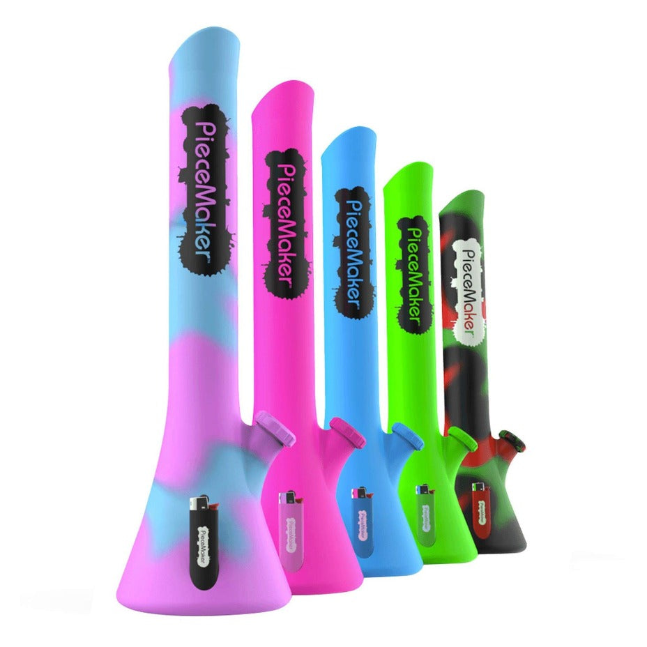 Piece Maker's Khemistry Klass Silicone water pipes are considered to be the best made and most respected silicone bongs on the market. The Kirby Kwest is their "signature piece"-it's 14.5" packed with great features such as a built in lighter holder, removable base for easy cleaning, built in ice catcher.