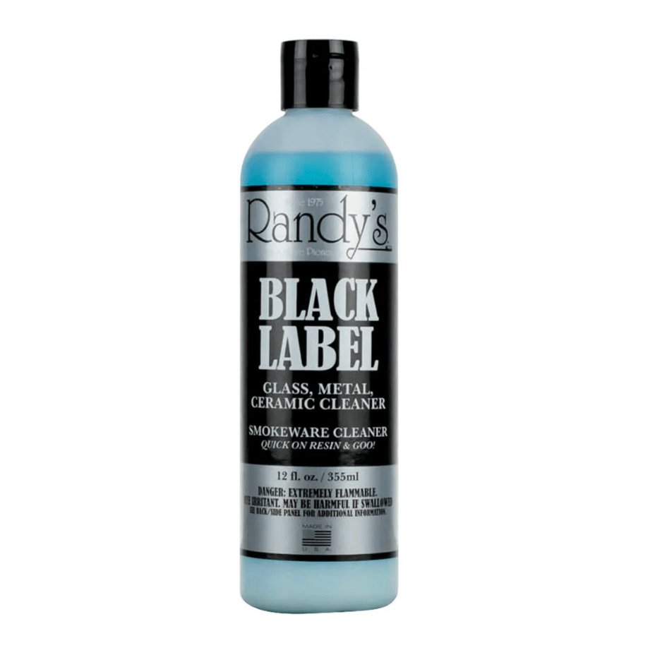 Randy’s Black Label Cleaner is one of our very best sellers. Black Label is a lightning fast resin and goo cleaning solution for any metal, glass, or ceramic smoking utensil. Just apply Black Label to any piece, shake, and let it soak for a few minutes before rinsing out in warm water.